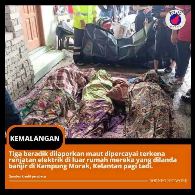 Tiga beradik maut, terkena renjatan elektrik rumah dilanda banjir